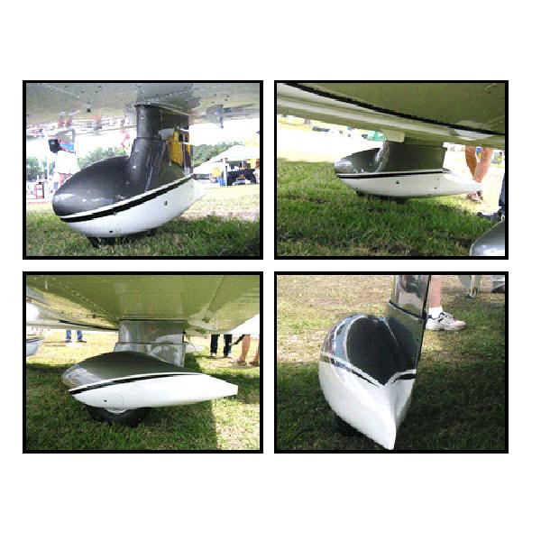 • Exposed brakes and trailing linkages just make matters worse, and our Fancy Pants really solve the problem as well as beautify your plane. A set of Fancy Pants will cover all the exposed brake and strut parts on your main gear.